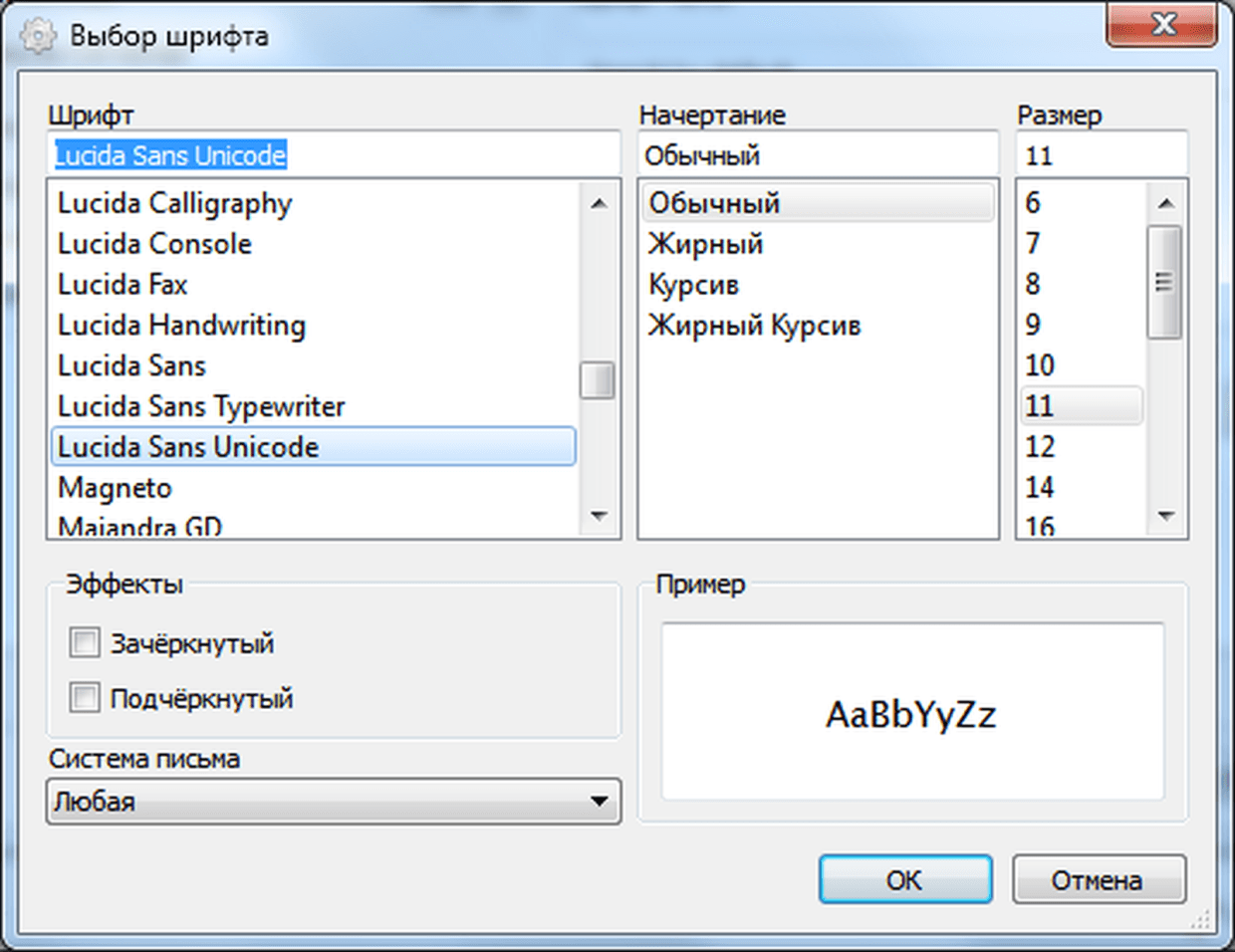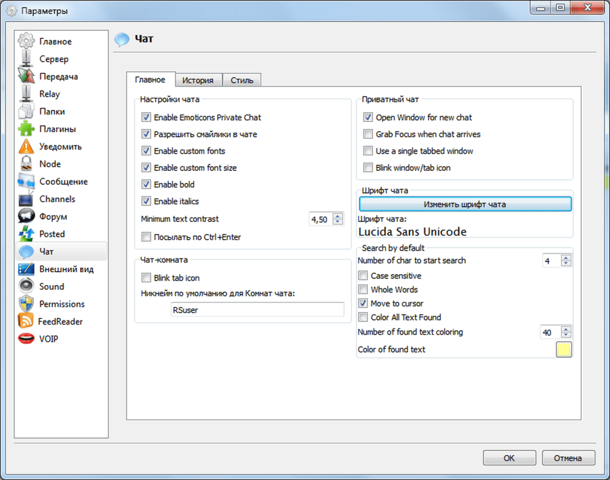 Выбор шрифта по умолчанию для чата: