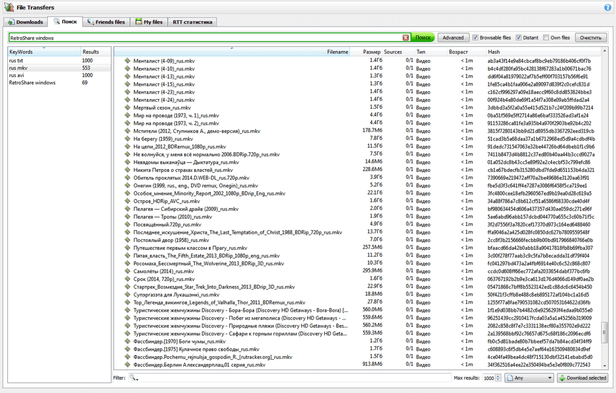 Причина № 1 В RetroShare пользователь единожды открывает анонимный доступ к папкам, не содержащим личную информацию, и больше об этом не вспоминает. Клиент каждые 15 минут проверяет все разделяемые папки на предмет новых файлов или отсутствие старых, обновляет хеш-базу и далее тихо ждёт поискового запроса. То есть файлообменная сеть RetroShare в смысле специфики разделения ресурсов работает аналогично eMule или DC-сетям. BitTorrent-сеть, очевидно, здесь не конкурент. Как долго в среднем вы храните в торрент-клиенте торренты на скачанные файлы? Почему же удельная информативность сети RetroShare будет выше, чем у eMule? Ведь там тоже ресурсы открываются на доступ целыми локальными папками.