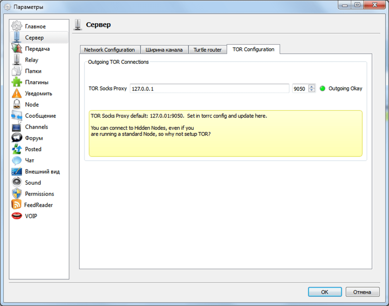 Если в вашем клиент-сервере индикатор «Outgoing Okay» не горит зелёным цветом, то в этом нет ничего страшного. Вы всё равно имеете возможность соединяться с регулярными узлами криптосети RetroShare. Исключение составят лишь те узлы сети, в сертификате которых вместо IP-адреса указан onion-адрес сети Tor. Такие узлы, в отличие от регулярных, называются Tor-узлами. Подробнее об этом можете почитать в статье, описывающей подключение к RetroShare через сеть Tor.[13]