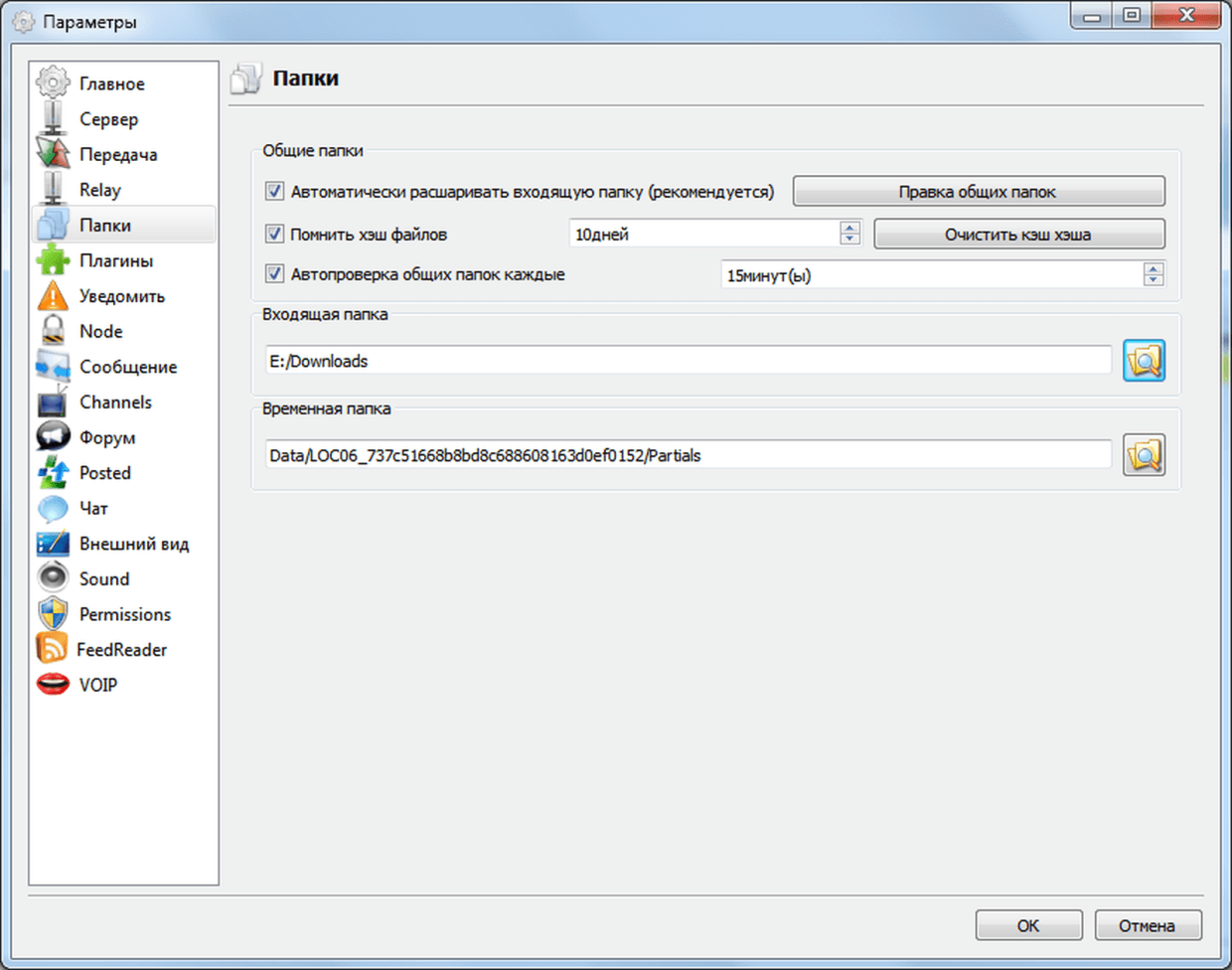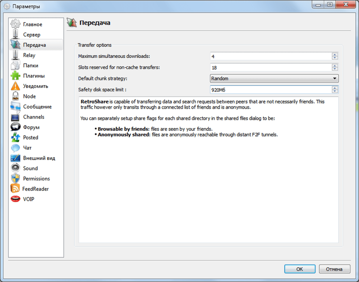 Вариант настроек RetroShare