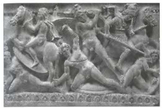 Битва римлян с галлами. Барельеф на римском саркофаге. Фрагмент. Около 51-53 гг. до н.э.