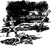 Рис. Г. КалиновскогоКапитан Сергей Илларионович Величко вернулся в свою бригаду в полдень 4 июля 1943 года. Около года он пробыл в тыловом госпитале, и мало кто из друзей надеялся с ним когда-нибудь свидеться. Величко был отправлен в госпиталь в состоянии, оставлявшем мало надежды на выздоровление. Ожидали, что в лучшем случае он останется инвалидом, однако в бригаду вернулся вполне здоровый, даже несколько располневший человек. Величко был назначен командиром батальона тяжелых танков и сразу же принял свой батальон. На фронтецарило полное затишье, но танки, как полагается, стояли в укрытиях в полной боевой готовности, а их экипажи в ожидании своего часа усердно проходили ежедневные учения. День ушел на знакомство с людьми и осмотр материальной части, а вечером в блиндаже капитана собрались старые друзья. О многом говорили в блиндаже, много воспоминаний разбудила встреча. Пожилой начальник штаба сказал задумчиво, как бы прислушиваясь к своим словам: — О тебе, Сергей Илларионович, мы столько тут нарассказывали за этот год и своим людям, и гостям, и газетчикам, что стал ты в некотором смысле личностью легендарной… Капитан помрачнел и сказал неохотно: — Зря, я ведь и повоевать не успел… и героем не был. Попал бы ты в мою шкуру, о тебе то же самое говорили бы. Гости разошлись. Капитану Величко плохо спалось на новом месте. Он несколько раз выходил из блиндажа покурить, а когда уснул наконец, то, как ему показалось, сразу же проснулся… Еще не открывая глаз, он понял, что произошло. Блиндаж трясся, и сухая кора падала с бревен перекрытия на постель. Он натянул на ноги сапоги, накинул шинель на плечи и вышел. Ночное небо на юго-западе освещалось вспышками, догонявшими одна другую и сливавшимися в одно сплошное жуткое мерцание. Земля содрогалась, глухо стонала и вздыхала, как будто она была большим живым существом, мучительно переживавшим боль сыпавшихся на нее ударов. — Видать, началось, товарищ капитан? — сказал автоматчик, стоявший у блиндажа. Его молодое лицо в темноте казалось старым и серым, а голос прозвучал неуверенно и робко. — Не трусь, — ответил Величко. — Давай-ка воды, будем умываться… Автоматчик нырнул куда-то в темноту и вернулся с ведром воды. Величко фыркал и ухал, вода была холодная, ключевая, а молодой боец, глядя на его тело, светящееся в темноте молочной белизной, говорил будто сам с собою: — Слыхать, немец на нас «тигров» пустит? — Лей сюда! — прикрикнул Величко, отводя руку за спину и хлопая себя тыльной стороной ладони по хребту. — А мы сами чем не медведи? Вода еще есть?.. Нету, и шут с ней… Он долго растирал тело шерстяной рукавицей, бормотал что-то, подшивая свежий воротничок к гимнастерке, насвистывал любимую песню и, когда его вызвали к командиру бригады, был уже одет и гладко выбрит. Полчаса спустя капитан Величко садился в свой командирский танк. Он был уже полон того напряжения, какое обычно появляется у людей перед боем, хотя знал, что должно пройти еще много времени, прежде чем его батальон встретится с врагом. Танки шли по дороге, растянувшись колонной. Он стоял, высунувшись по грудь из башни, и наблюдал за дорогой, за движением, за воздухом… Кусты, поля, деревни в предрассветной дымке кружились и летели вспять по сторонам дороги. Жизнь мчалась, как стремительная река, и жаркий поток ее нес его с собой. …Было на Днепров