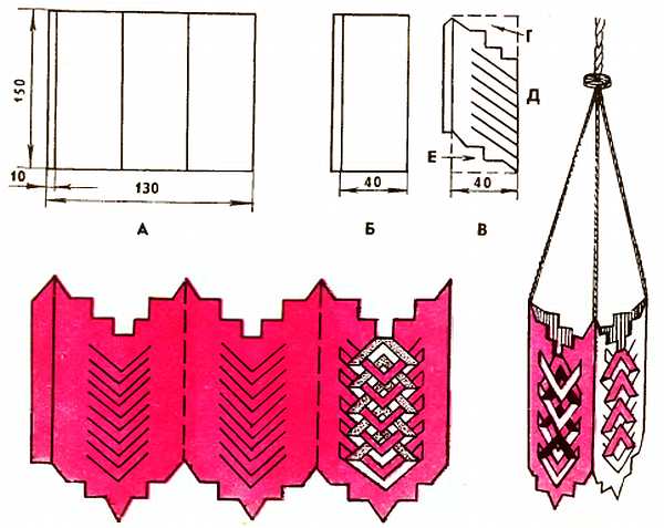 Если сложно выполнить рисунок салфетки, можно переснять его на просвет: складывают вместе рисунок и лист бумаги, на которую нужно перевести рисунок. Затем их прикладывают к оконному стеклу или переводят на стекле с подсветкой снизу. Контур рисунка, просвечивающегося через бумагу, обводится, наносятся точки наколов. Заплет в каждой полотнянке отдельно. По выполнении полотнянок выполняются плетешковые заполнения из пар, выходящих по окончании зашивки. В каждой полотнянке своя зашивка иглой (рис. 42).