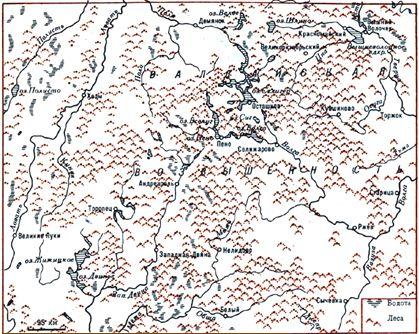 В наше время Валдай привлекает живописностью своего всхолмленного ландшафта, в котором леса, поля и озера создают неповторимую прелесть этого замечательного края, облагороженного человеческим трудом. Не так было в далекую доисторическую пору, когда здесь появился человек. Местность покрывали труднопроходимые леса, среди которых еще оставалось немало болот и озер. Тут уже тогда наметился водораздел между бассейнами Волги, Днепра и Западной Двины. А у западных отрогов Валдая, вдоль возникших уже к этому времени рек Ловати, Куньи, Торопы и других, намечались озерно-речные системы, объединенные спустя много веков торговым путем «Из варяг в греки». Это были земли, не знавшие сухопутных путей. Не случайно даже в средние века конные полчища татар в 1238 г. не смогли продвинуться на север, к Новгороду: дойдя до Игнача-креста, они были вынуждены повернуть назад. Зато леса и озера Валдая изобиловали дичью и рыбой. С юга сюда пришел бык-тур, нашли тут удобные для себя пастбища лесные лошади, появился шерстистый носорог и мамонт, кости которого находят в Калининской области. Следом за ними в этих диких местах поселился и человек, которому тут приходилось не только охотиться, но и вести борьбу с суровыми климатическими условиями и хищными зверями. Можно предполагать, что и название Болконский лес на Валдае возникло из-за большого количества водившихся тут волков. Поселения располагались чаще всего по берегам рек и озер на сухих местах, поросших хвойным лесом. Обнаруженные на Валдайской возвышенности двенадцать камней-следовиков находятся в районе Осташкове (озеро Селигер), Селижарово (верховье Волги), озера Пено и прилегающих к ним районов Валдая. Вероятнее всего, так же поступал человек послеледникового периода и в других местах, где он оставил камни-следовики. Выслеживая животных и птиц, человек из поколения в поколение имел дело с их следами и научился определять, не только какое животное оставило следы, но и размер зверя, возраст, утомлен ли он от преследования и т. п. Таким образом, каждый след становился источником целого ряда сведений, приобретал индивидуальность. Это получило отражение и в изображенных на камне человеческих следах: они не похожи один на другой, разной величины и имеют присущие каждому из них особенности. На первый взгляд это звучит парадоксально, но я пришел к выводу, что каждый выбитый на камне след человека, а иногда, может быть, и зверя становился для того, кто его воспроизводил, как бы своего рода «портретом». По этому следу его узнавали все, кто с ним встречался. Таковы камни-следовики, обнаруженные на Валдайской возвышенности. След на Новодеревенском камне широкий, тупой, явно искривленный; на Меглинском, наоборот, вытянут и имеет заостренный носок; на Дубковском камне мы видим широкий носок и узкую пятку; у следа на Слободском камне искривлена передняя часть, а след на Новинском камне имеет какой-то выступ с правой стороны; след на Конецком камне слабо выражен, а рядом широкий след какого-то животного; напротив, след на Нечаевском камне отчетлив и правилен в своих очертаниях, но более крупный по размерам; след же на Пустошкинском камне выделяется как своими размерами, так и выбитым около него следом животного и т. д.