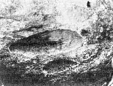 Он показал мне снимок валуна с очень грубо выдолбленным человеческим следом. По бокам следа виднелись еще какие-то углубления, назначение которых невозможно было определить. — Это Меглинский камень, — пояснил Сергей Николаевич, — обнаружен у деревни Меглино. Названия камням, которые мне удалось обнаружить, я даю по ближайшим селениям. Так легче вести их учет. Работники Калининского краеведческого музея так им заинтересовались, что, не без трудностей, конечно, привезли его к себе в музей и включили в экспозицию. Сергей Николаевич достал другой снимок. — А это Новоселовский камень, — продолжал он. — Обнаружил я его на окраине деревни Новосел в Новгородской области. На нем тоже человеческий след, но рядом выбит след какого-то небольшого парнокопытного животного, по всей вероятности косули. На фотографии самый обыкновенный, средней величины валун лежал у деревенской изгороди. Приглядевшись, я заметил, что одна сторона камня явно стерта. По всей вероятности, он где-то застрял, и лед в течение столетий двигаясь по нему, стер эту сторону. Потом, когда ледник отступил, этот камень приглянулся какому-то человеку, который выбрал его, чтобы выбить на нем следы. Но что могли означать они? Быть может, человек выбил свой след и след убитого им животного, чтобы удачной оказалась и новая охота? — Интересный камень, не правда ли? — проговорил Сергей Николаевич, заметив, с каким вниманием я рассматриваю фотографию. — Я распрашивал о нем в деревне. Никто ничего не знает. «Всегда тут лежал, — отвечают. — Деревне-то этой, верно, тысяча лет, а камень-то, поди, еще до нас здесь находился, когда тут лес вековой стоял…» — А на этом камне, — показал Сергей Николаевич новую фотографию, — явственный след какой-то крупной птицы, похоже глухаря. Местные жители называют его Петухов камень, но это, конечно, не петушиная лапа… А вот в позапрошлом году у деревни Воложба в Ленинградской области, под Тихвином, мне удалось найти камень, на котором выбит след медведя. На фотографии был запечатлен типичный валун среднего размера со сглаженными краями. На его плоской поверхности я увидел совершенно отчетливо широкий медвежий след. Он был глубокий. На его переднем крае угадывались даже небольшие выемки острых когтей зверя.