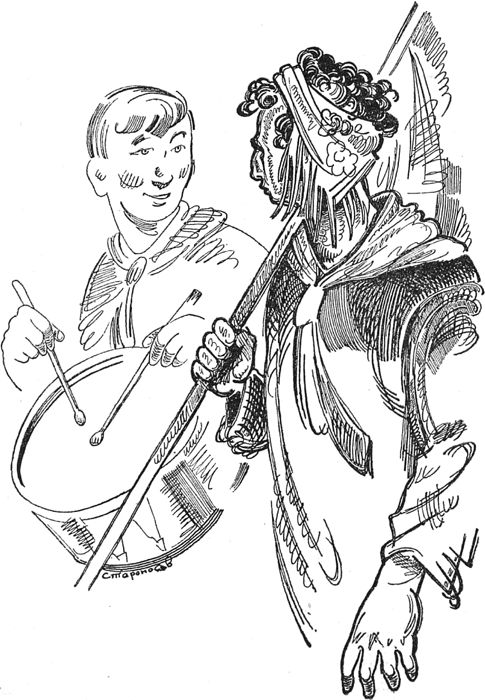Боевой марш. Боевые колонны революционной смены. Буйная молодая человеческая поросль, готовящаяся стать на страже интересов трудящихся, готовящихся придти на смену усталым и выбывающим из строя борцам революции. Боевой марш. Четкая дробь барабана. Алым маком бросающиеся в глаза галстуки. Ослепительно золотая труба. Молодость вышагивает по улице серьезная, неприступная. Со знаменем впереди высокий мальчик. Его темное загорелое лицо серьезно. Каждый шаг его — шаг к светлому радостному будущему, победа над темнотой и невежеством. Это — Каймас. Сзади с барабаном не менее довольный и счастливый Сережа. С особым вдохновением он выстукивает по барабану и находит минутку переброситься словечком с важно шагающим впереди Каймасом.