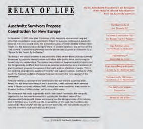 Веб-сайт «Эстафета жизни» описывает, как 13 ноября 2007 года более 30 выживших из лагеря уничтожения Освенцим и других нацистских концентрационных лагерей собрались в Освенциме в Польше на однодневную конференцию. Основываясь на своём уникальном моральном кредо, эта необычная группа людей решила поддержать своим авторитетом дискуссию о будущем Европы. На торжественной церемонии оставшиеся в живых из этого «ада на земле» поделились своим опытом из прошлого, а также предложили Конституцию «Европы для народа, от имени народа».