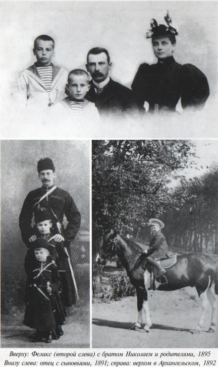 Родился я 24 марта 1887 года в нашем петербургском доме на Мойке. Накануне, уверяли меня, матушка ночь напролет танцевала на балу в Зимнем, значит, говорили, дитя будет весело и склонно к танцам. И впрямь по натуре я весельчак, но танцор скверный. При крещенье получил я имя Феликс. Крестили меня дед по матери князь Николай Юсупов и прабабка, графиня де Шово. На крестинах в домашней церкви поп чуть не утопил меня в купели, куда окунал три раза по православному обычаю. Говорят, я насилу очухался. Родился я таким хилым, что врачи дали мне сроку жизни – сутки, и таким уродливым, что пятилетний братец мой Николай закричал, увидев меня: «Выкиньте его в окно!». Я родился четвертым мальчиком. Двое умерло во младенчестве. Нося меня, матушка ожидала дочь, и детское приданое сшили розовое. Мною матушка была разочарована и, чтобы утешиться, до пяти лет одевала меня девочкой. Я не огорчался, даже, напротив, гордился. «Смотрите, – кричал я прохожим на улице, – какой я красивый!» Матушкин каприз впоследствии наложил отпечаток на мой характер. Из самых ранних детских воспоминаний – поход в берлинский зоосад, когда оказался я в Берлине с родителями. На мне была матроска, купленная накануне, на макушке шикарная бескозырка с лентами, в руке – тросточка. Вела меня няня, очень моим видом довольная. У входа в зоопарк стояли страусы с экипажиками. Я захотел прокатиться, няня согласилась. Страус пошел хорошо, но вдруг без видимой причины взволновался и бешено погнал по дорожкам. Я сидел ни жив ни мертв в легкой колясочке. Страус остановился только у своей клетки. Служители и перепуганная няня добежали и вытащили меня. Я обезумел от страха и потерял бескозырку. Чтобы успокоить и утешить меня, няня повела меня ко львам. Эти сидели к нам спиной. Я пощекотал одного тросточкой, чтоб оглянулся. Ноль вниманья и фунт презренья, даром я был хорош в новом костюмчике… Учась в Оксфорде, я, проездом в Берлине, интереса ради зашел в зоопарк. Огромная обезьяна-самка Мисси, которую я угостил арахисом, вдруг воспылала ко мне такой дружбой, что сторож пригласил меня войти с ним в клетку. Я вошел неохотно. Мисси, однако, безумно обрадовалась, обняла меня длинными руками и крепко прижала к мохнатой груди. Мне это было неприятно, и я хотел уйти. Но, едва я отошел, обезьяна пронзительно закричала, и сторож попросил меня погулять с ней. Я предложил руку новой подруге и пошел с ней по дорожкам зоопарка. Прохожие хохотали и фотографировали нас. Потом, всякий раз бывая в Берлине, я навещал приятельницу. Однажды клетка оказалась пуста. «Мисси умерла», – со слезами сказал служитель. Горе его было трогательно. Больше в берлинском зоопарке я не бывал. В детстве посчастливилось мне знать прабабку мою, Зинаиду Ивановну Нарышкину, вторым браком графиню де Шово. Она умерла, когда было мне десять лет, но помню я ее очень ясно. Прабабка моя была писаная красавица, жила весело и имела не одно приключенье. Пережила она бурный роман с молодым революционером и поехала за ним, когда того посадили в Свеаборгскую крепость в Финляндии. Купила дом на горе напротив крепости, чтобы видеть окошко его каземата. Когда сын ее женился, она отдала молодым дом на Мойке, а сама поселилась на Литейном. Этот новый ее дом был точь-в-точь как прежний, только меньше. Впоследствии, разбирая прабабкин архив, среди посланий от разных знамени