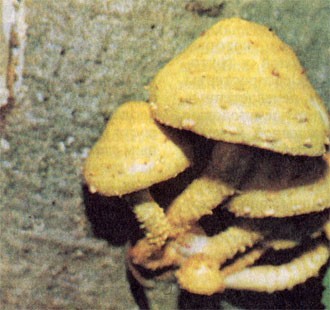 Так выглядят в современном электронном сканирующем микроскопе спороносный слой шапочного пластинчатого гриба при увеличении в 8 тыс. раз, увиденный с такими подробностями только в 70-е годы текущего столетия