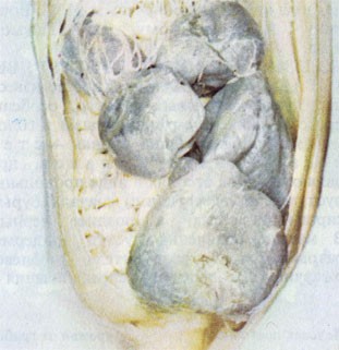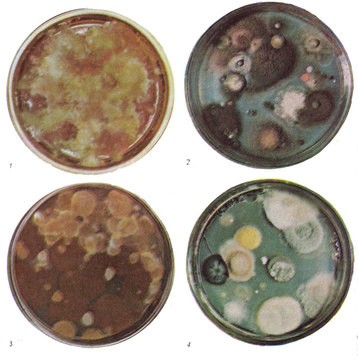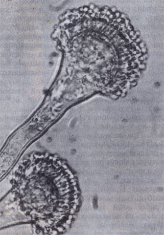 Грибы окружают нас везде, но далеко не всегда мы можем видеть их без помощи специальных оптических приборов — микроскопа или сильной лупы. Большинство грибов имеет микроскопические размеры, и в природе, воде, почве, растительных остатках, на живых растениях и животных и т. п. их часто нельзя обнаружить невооруженным глазом. Мы замечаем их только как мелкие дернинки или налеты различной окраски или чаще видим результаты их деятельности, например патологические изменения у растений и животных, разрушение различных материалов и изделий. Примером могут служить ржавчинные, головневые и мучнисто-росяные грибы, получившие свои названия из-за характерного вида поражения ими растений, покрытых ржавыми пятнами спороношений гриба (ржавчина), как бы обугленных или покрытых сажей (головня), или покрытых мучнистым налетом (мучнистая роса). Очень часто грибы образуют плесени самой разнообразной окраски — серые*, черные, зеленые, розовые и др. — на пищевых продуктах, овощах и фруктах при хранении, на зерне, бумаге и других целлюлозосодержащих материалах, тканях, пластмассах, произведениях искусства (на красочном слое картин, деревянной скульптуре и т. п.), на приборах, топливе и многих других материалах и изделиях.