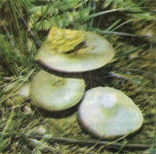 Свежие молодые грибы (шляпки, 1 кг) вымыть, обсушить, посолить и жарить 15 мин на сковороде в сильно разогретом масле, часто помешивая, а затем снять и поставить в теплое место. В разогретое масло положить нашинкованный лук (20 г), посолить и тушить до мягкости, после чего добавить стакан сметаны, вскипятить и полученной подливой залить грибы.