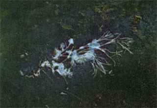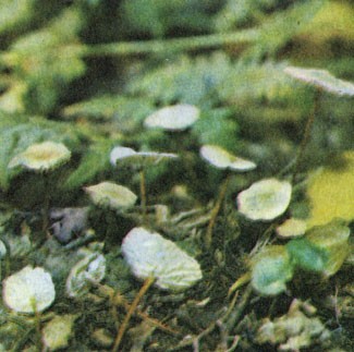 Как же образуются "ведьмины кольца" и почему трава в разных зонах выглядит по-разному? На поперечном разрезе "ведьмина кольца" видно, что мицелий в кольце нарастает радиально и молодая, наиболее активная его часть располагается по его периферии. Здесь и происходит образование плодовых тел. В том месте круга, где наиболее интенсивен рост мицелия, он густо пронизывает почву, образуя часто плотные сплетения, затрудняющие нормальный доступ воды к корням растения. В этой зоне наблюдается так называемая физиологическая засуха, которая и вызывает гибель растений. Кроме того, химический анализ почвы в такой зоне обнаруживает высокую концентрацию соединений азота, гибельную для растений. В центре же старых кругов мицелий отмирает, почва обогащается продуктами ею распада и минерализации, стимулирующими рост растений. Стимуляция роста наблюдается и в зоне нарастания молодого мицелия, за пределами кольца плодовых тел. С помощью гидролитических ферментов мицелий гриба разлагает белки и другие органические соединения, находящиеся в почве, а почвенные бактерии превращают образующийся аммиак в нитраты, которые и используются растениями.