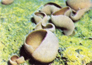 Всем известны сморчки и строчки с их складчатыми шляпками на ножках. На почве, гниющей древесине и поверхности кострищ в лесах часто можно встретить их ближайших родственников — пецицы, алеврии и др. Их плодовые тела совсем не похожи на сморчки, они обычно довольно мелкие и имеют вид дисков, чашек или бокальчиков желтоватого, коричневого, а иногда и ярких цветов — оранжевого или красного. За форму плодовых тел они получили общее название дискомицеты (диском часто называют несущую споры часть их плодового тела). Некоторые из дискомицетов, встречающихся у нас в лесах средней полосы, по яркости и красоте не уступают даже тропическим гастеромицетам. Встречающаяся ранней весной микростома вытянутая, например, образует небольшие бокаловидные плодовые тела с ярко-красным диском; в зрелом возрасте они разрываются на лопасти и выглядят как яркие огненные цветы.
