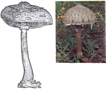 Гриб-зонтик пестрый из 'Кодекса Клузиуса' конца XVI — начала XVII вв. и на современной фотографии