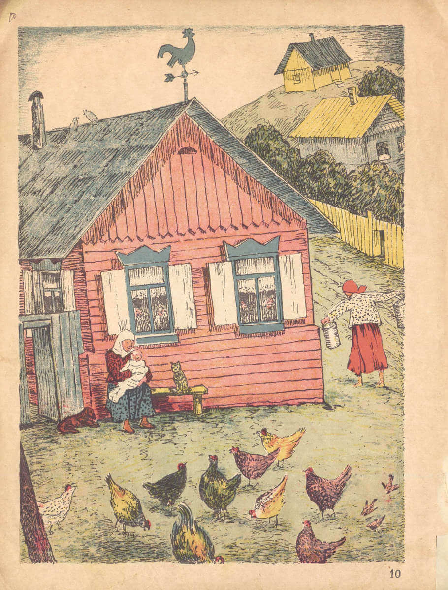 Ой, хохлушечки, хлопотушечки, уж така новина. да диковина! Как на самый на вершок да сел Петушок, он не скачет, не кричит. он вертится да скрипит, на солнышко не поёт, на зернышко не зовёт, за порядком не следит, на хохлушек не глядит. Куда ветер тянет, туда Петух глянет.