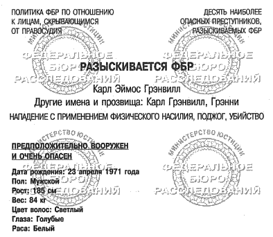 Отрывок из текста выпуска новостей от 11 июля, вышедших в эфир в 5 часов утра по восточному поясному времени на канале Эй-эн-эн в часовой программе «Санрайз ньюс»:Дэн Эллер, ведущий: Доброе утро. К сожалению, к нам поступили трагические новости, имеющие отношение к поискам Карла Грэнвилла, молодого писателя, разыскиваемого в связи со смертью двух женщин, одна из которых, Мэгги Петерсон, была заметной фигурой в книгоиздательском бизнесе города Нью-Йорка. Вчера утром агенты ФБР обнаружили, что подозреваемый направился в Вашингтон, округ Колумбия, туда, где проживает Аманда Мейз, заместитель отдела городских новостей «Вашингтон джорнэл» и бывшая подруга Карла Грэнвилла. В результате поджога дом мисс Мейз загорелся, и огонь уничтожил его почти полностью. Пожарные приехали на место происшествия в половине второго ночи и до сих пор пытаются спасти остатки имущества. Сама же мисс Мейз исчезла, хотя еще нет доказательств того, что она находилась в доме, когда вспыхнул огонь. По прибытии на место возгорания полицейские и пожарные обнаружили неподалеку от дома мисс Мейз автомобиль специального агента ФБР Брюса Шанахоффа. В машине было найдено тело агента Шанахоффа, убитого выстрелом в голову. В настоящее время мы не располагаем подробностями. Ни полиция, ни официальные представители ФБР не дают никаких комментариев по поводу возможной связи между убийством специального агента ФБР Шанахоффа и двумя убийствами, совершенными в Нью-Йорке. Надеемся, что сможем сообщить вам о дальнейшем развитии событий через час, когда выйдет в эфир передача «Проснись, Америка».
