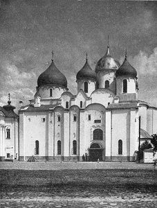 По своему благоустройству Новгород оставил позади себя многие города Западной Европы — уже в XI в. здесь мостили улицы, тогда как, например, в Париже мостовые появились лишь к концу XII в. Эти мостовые недавно обнаружены нашими археологами, ведущими в Новгороде большие раскопки. Вдоль улиц шли желоба и трубы сточных вод. Ярославово дворище имело первый в северной Европе водопровод, по которому в деревянных трубах шла чистая ключевая вода. Как и Киев, Новгород был уже в XI в. крупнейшим культурным центром Руси. История его культуры отражает развитие Новгорода по пути от княжеской волости в феодальную республику. В произведениях культуры того времени ярко отражался социальный, заказ новгородских или иных феодалов, проникнутый господствующей идеологией — христианством. При введении в Новгороде христианства князь Владимир Святославич поставил здесь дубовый храм Софии. В 1044 г. Ярослав Мудрый заложил каменный детинец, а в 1049 г. новгородский князь Владимир Ярославич построил новый каменный софийский храм, в котором воплотились основные черты новгородского зодчества — простота и ясность форм. Этот храм с переделками и достройками просуществовал до наших дней, и только немецкие фашисты разорили его. В начале XII к в Новгороде строится ещё ряд замечательных храмов — три собора на берегу Волхова были воздвигнуты в течение 1112–1119 гг. Построенные русскими мастерами, эти соборы создавали определённый архитектурный стиль города. Внутри соборы были украшены прекрасной фресковой живописью[6].