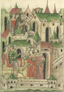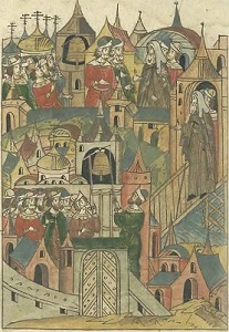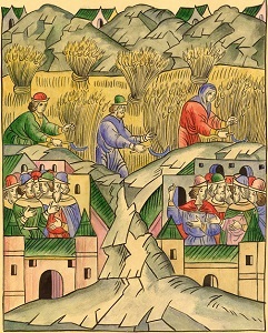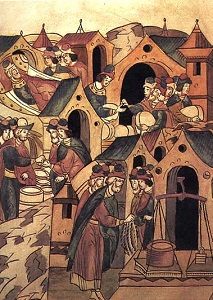 Торговля хлебом и мёдом в Новгороде (миниатюра)