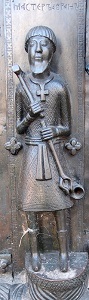 Автопортрет новгородского литейного мастера Авраама (деталь Корсунских ворот в Софийском соборе, XIV в.)