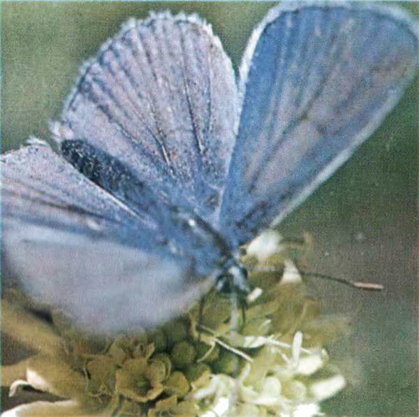 Едва выйдя на улицу, тут же, на ярком июльском солнце, осторожно разворачиваю папиросную бумагу, в которую пленка аккуратно завернута. Смотрю… Сначала идет ряд темных коричневых прямоугольников — трудно что-либо различить. Недодержка. Догадываюсь: это шмель. Он не получился, увы. Вечер, мало света… Неужели?.. Есть! О, все в порядке! В переплетении росистых травинок — глянцевитая, ослепительно желтая чашечка лютика с каплями на лепестках, травинки словно усеяны голубоватыми шариками. Все так и было! И герань получилась, и печально повисший бутон гравилата, и соцветие раковой шейки с пчелой и маленькими жуками. И даже бабочка-голубянка, которую я щелкнул наскоро, боясь пропустить счастливый миг…