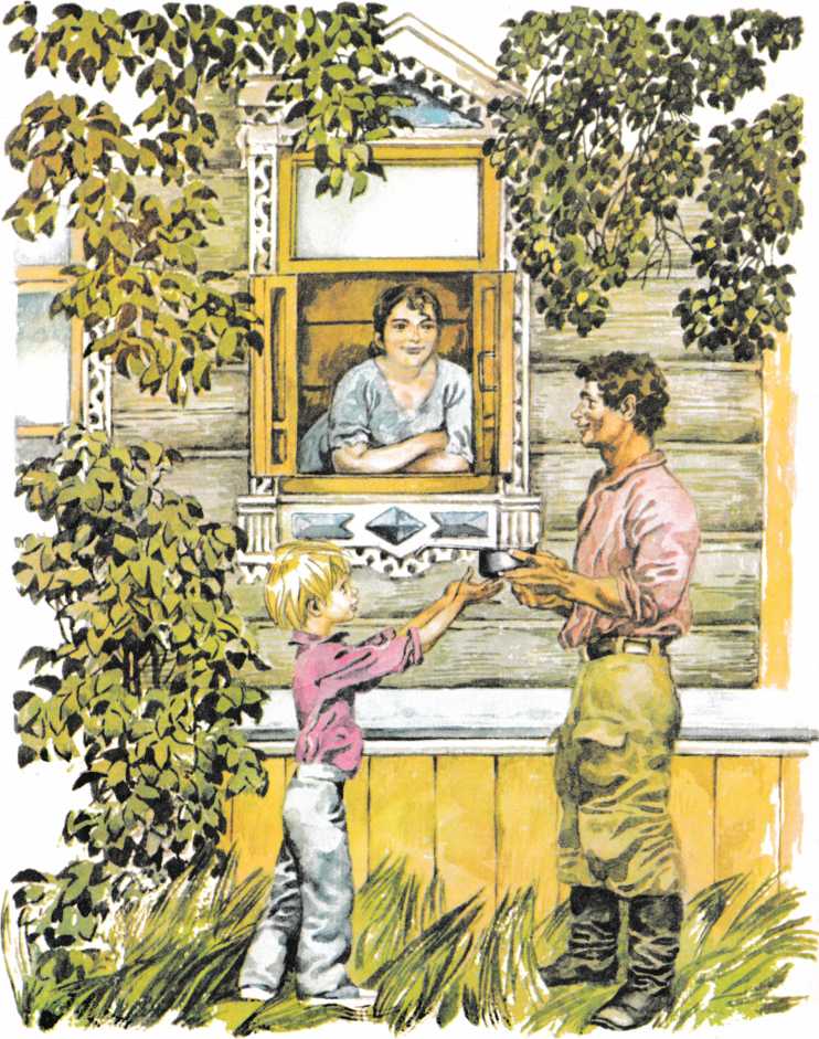 Чумазый Ваня заулыбался во всю ширь, мигом поднял над головой кепку: — Августе Андреевне привет! Не найдется ли чем холодненьким промочить горлышко? Этакое неопределенное «не найдется ли?» Ваня говорил лишь из одной деликатности. На самом деле он отлично знал, что прохладненькое у нас найдется всегда. Это он намекал на квас, которого перепробовал тут под тетушкиным окошком, наверное, уже не меньше чем полкадушки. И вот как только он на квас намекнул, так я опять и подумал: «Теперь — все! Теперь они про меня и вспомнят!» Бежать для Вани за квасом в холодный чулан и подавать ковш через окошко была моя, и только моя, всегдашняя обязанность.