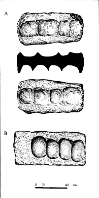Блок из Ясоса с тремя параллельными надпилами (Bruno 2008).