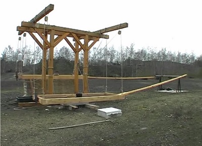 Но рассуждать о древних механизмах мало — требуется реконструкция. Найдутся ли сумасшедшие, которые попытаются воссоздать древнюю пилораму? Да, нашлись такие! В 2006 году французский археолог Жак Сенье вознамерился воспроизвести механизм из Герасы в натуральную величину, и не где-нибудь, а на его историческом месте. Коллектив опытных кузнецов и плотников много месяцев работал над деталями, в начале 2007 года началась сборка сооружения. 22 марта 2007 года собранную «пилораму» торжественно открыл Его Королевское Высочество принц Иордании Хамза ибн Хусейн (حمزة بن الحسين). Как пишет Сенье, целью было создать максимально точную реконструкцию, поэтому планировалось использовать только материалы и технологии, доступные в VI веке н. э. Однако изготовители столкнулись с рядом проблем: крайне трудно было раздобыть материал с нужными характеристиками, а также найти мастеров, умеющих работать по старинке. Быстро возникли и финансовые трудности. В итоге реконструкторы, как часто, увы, бывает, пошли на компромисс: использовали современное плотницкое оборудование и имеющееся в продаже сырье — в частности, промышленную древесину, но выбиралипороды, близкие тем, что росли в районе Герасы — дуб и сосну. Сам археолог заверяет, что всё то же самое можно было целиком сделать вручную, но «с задержками и более высокими производственными затратами». Как это мне знакомо!