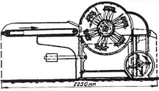 Рис. 4. Схема постава для распиловки тюлек на плахи и плах на клепку и дощечку на станках с круглыми пилами. При брусовке число пропилов 4, при распиловке — 25, при обрезке кромок — 24. Ширина пропила при брусовке 8 мм, при распиловке 5 мм, обрезке 5 мм. Размеры клепки: толщина 29 мм, ширина 61 108 мм; размеры дощечки: ширина 37–72 мм, толщина 10 мм. Расчетный выход всей пило-продукции 67,4 %, клепки 60 %, в том числе радиальной 40 %, дощечки 7,4 %