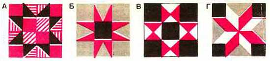Раствор разравнивается и разглаживается полутерком или ровной доской-«гладилкой». «Гладилка» кладется на две направляющие доски и тянется по раствору за оба конца. В студенческом стройотряде эту «гладилку» метко прозвали ручной поверхностный вибратор типа «Свекр». (Почему «Свекр»? Ответ в названии). Переставляя направляющие доски, заливаете полосу за полосой. Если будете производить заливку полов быстро, то доски нужно выставить сразу на всю комнату. Иначе при распалубливании несхватившийся раствор оплывет. Время схватывания стяжки 7–8 суток. На третьи сутки она наберет 30 % прочности, по ней можно будет ходить, на 7—8-е сутки — 50 % прочности, на 28-е сутки — 90 %. Дальнейшую прочность цемент набирает годами. Паркет по цементной стяжке наклеивается на битумной мастике. Для лучшего сцепления мастики и стяжки последнюю нужно промазать прамером. Прамер или грунтовку изготовляют из битума MIII-MIV. В одну часть битума, расплавленного и остуженного до 80 °C, вливают 2–3 части бензина или керосина. Все перемешивают до получения однородной жидкости. Затем этой грунтовкой промазывают стяжку с помощью «Квача». «Квач» представляет собой подобие метлы, только вместо веток на конец палки привязаны веревки длиной 30–40 см или просто тряпка. Пока прамер подсыхает, выберите рисунок полов (рис. 27).