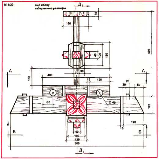 После склеивания производят выравнивание прави'льной доской двух боковых плоскостей заготовки до размера 40 мм между ними, а затем накладывают шаблон и размечают контур изделия. Далее лобзиком с припуском 2–3 мм от разметки выпиливают контур (рис. 19,в). Потом, исходя из проекций изделия (рис. 20), общего вида (рис. 18), а также по вылепленной из пластилина модели, выполняют сначала грубую, а затем тонкую резьбу.