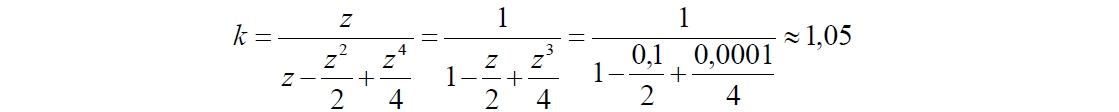 Погрешность вычисления скорости с её завышением при таком отбрасывании и значении z = 0,1 составляет 5%: