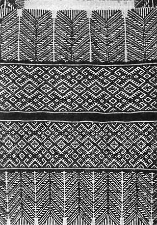 А в православии стал этот крест называться Андреевским в честь Андрея Первозванного и силу свою обережную сохранил. Недаром Андреевский флаг с изображением этого креста голубого цвета охранял в сражениях не одно поколение русских воинов. В виде круга-розетки с множеством лучей вышивали свои солнышки мастерицы на полотенцах, рубахах, головных уборах. Иногда круг превращался в многогранник, ромб и даже квадрат. Однако нередко именовался также кругом, олицетворяющим солнце, словно блестящий шар, плывущий по небу. Ромб, в свою очередь, как солярный знак подчеркивал идею плодородия, продолжения жизни. Считалось, что его очертания вторят очертаниям материнского лона, матери-женщины и матери-земли — начала всего живого. Поэтому ромб воспринимался не только знаком солнца, но и земли. Если изображался с точками в центре или поделенным на четыре маленьких ромба, то обозначал не просто землю как твердь, а плодородную почву, вспаханную бороздами. Ромб с крючками являлся символом матери-земли плодоносящей, плодоносящего поля, женского начала и магии плодородия вообще. Его использовали в вышивке для изображения побегов, прорастающих на теле коней, птиц, центрального элемента дерева жизни, головы Великой матери. Особенно обильно узорами из различных ромбов украшали наряд невесты, будущей матери, продолжительницы рода (рис. 2). Изображению женской фигуры в вышивке отводилось особое место, поскольку в ее образе нашли свое воплощение несколько персонажей.