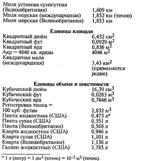 единиц важнейших физических величин, применяемых в Великобритании и США, в единицы, допускаемые к применению в Российской Федерации