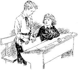 Мама так хорошо читает, что Кате очень ясно представляется и зеленеющая травка и ласточка — маленькая такая птичка, которая сидит на ладони и, щебеча, весело склёвывает зёрнышки… Вдруг мама со стуком опускает на стол книгу. Брови у неё хмурятся; она пристально смотрит на Катю. Хотя нет, не на неё. Мама смотрит на соседа Кати — Саньку Клепикова. Конечно, Санька опять отвернулся к окну и ничего не слушает… Он всегда такой, этот Санька! Катя толкает его локтем в бок, но уже поздно. — Клепиков, — говорит Нонна Петровна. — Ты опять отвлекаешься? Повтори-ка, пожалуйста, мои последние слова. Осторожно, чтобы не задеть соседку, Санька откидывает крышку парты и встаёт. Ростом он не выше Кати, но оттого, что у него круглые тяжёлые плечи и большие руки, он кажется не по летам взрослым.