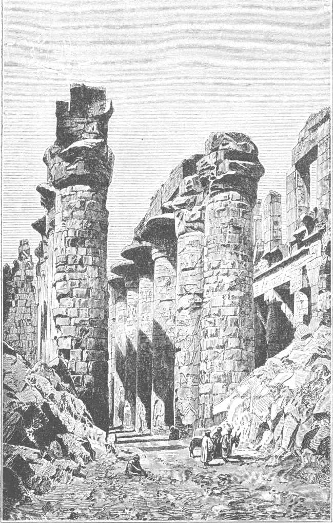 Значит, знакомство с естественными науками, то-есть с достоверными знаниями о природе, далеко не лишне и для понимания старинных преданий и „священных" книг. Благодаря науке имеются хорошие и вполне правильные способы проверять и эти старинные книги и предания. Если в них говорится истина, — она должна выдержать всякую проверку. А если эти книги научной проверки не выдерживают, значит, нечего и считать их правильными, просто-напросто следует отбросить их рассказы, как всякую иную ложь. Вот какая проверка может быть для Мемнонова чуда: коли звучал Мемнон, значит, при кое-каких обстоятельствах может звучать и камень. А коли он зазвучал в Фивах, — значит это может повториться и в других местах, лишь бы там были налицо совершенно такие же или схожие обстоятельства. Всякое явление природы может повторяться, лишь бы повторились причины, производящие его. Рассуждая о звучащих камнях, уже заранее можно предугадать, что наверное они существуют еще где-нибудь. И правда, известны такие звучащие камни и в других местах. Например, в Египте, в Карнаке, до сих пор стоят развалины громадного, очень старинного храма… Его построил за 1630 лет до нашей эры фараон Тутмозис. В былые времена этот храм славился своим богатством и величиной на весь Египет. В настоящее время от него остались лишь-безобразные развалины, едва напоминающие о прежней славе. Громадные каменные колонны, покрытые священными письменами и украшениями, еще высятся среди глыб красного гранита, мрамора и песчаника, на которых был выстроен храм. Они идут длинными рядами. Высотою они до 15 и даже до 20 метров.
