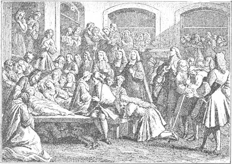 Больные и немощные на могиле дьякона Франсуа де-Пари, на Сен-Медарском кладбище (в Париже). (Рисунок взят из старинной книги).