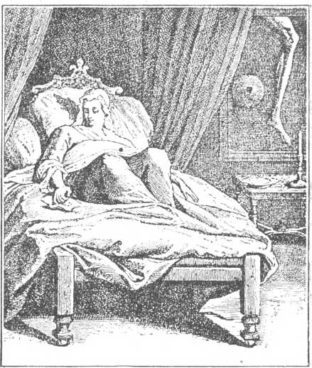 Служанка Коарен с удивлением находит свою больную хозяйку выздоровевшей. (Рисунок того времени).