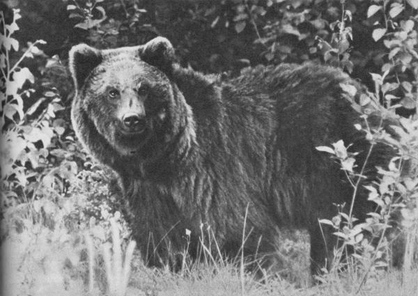 Как встретит теперь медведь человека, если человек пожелает подойти поближе к нему? Проявит ли медведь ту самую агрессивность, о которой так часто говорится в разных лесных историях? Или же агрессивность не является для медведя правилом поведения? Зная, что ни одному животному нельзя навязывать свои условия, натуралист с фотоаппаратом в руках не спеша подходит к медведю, которого уже успел приучить к себе. Подходит по ветру, то есть так, что ветер дует в сторону медведя и тот может заранее узнать о приближении человека и принять решение, как ему поступить: удалиться или же прогнать непрошеного гостя. И вот медведь поймал первый, еще не очень ясный запах. Нет, он почти не изменил своей позы — он всего лишь поднял голову и, поводя носом, старается точнее узнать, кто именно пожаловал к нему. Наконец он узнал знакомый запах и остался стоять на месте. Человек подходит. Расстояние между ним и зверем сокращается. Зверь уже хорошо видит приближающегося. А человек все это время снимает, щелкает затвором фотоаппарата... Что же произойдет дальше? А произошло то же самое, что происходит и в лесу, когда на лесной тропе встречаются человек, умеющий с достойным уважением относиться к животным, и медведь, не обиженный еще людьми: медведь и в этот раз уступил дорогу человеку. Он медленно повернулся и так же медленно побрел в сторону.