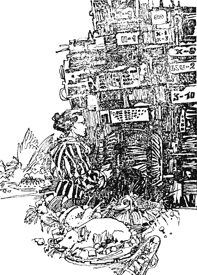 Однажды утром, сойдя вниз, мисс Мези увидела, что автокорзинка для бумаг злонамеренно засасывает вчерашнюю почту, которую она вовсе еще не собиралась выбрасывать. Часы-календарь объявили время каким-то необыкновенно визгливым голосом: так нахально домашние автоматы обращались только с ней. Надо быть твердой, подымала мисс Мези. И однако у нее задрожали губы, как всегда бывало, когда она робела. А робела она чересчур часто. Преглупо в наш век быть трусихой, ведь на дворе просвещенный и мирный год две тысячи второй. Брат мисс Мези не уставал ей это повторять, но чем больше он кричал и топал ногами, тем сильной ее одолевала робость. Мисс Meзи выключила автокорзинку и тихо постояла, глядя на самодовольный циферблат часов: она раздумывала о нахалах и тиранах вообще и о домашних автоматах в частности. Она их боялась и ненавидела всех до единого. В доме их полным-полно. С утра до ночи только и делаешь, что опасливо нажимаешь кнопки, переводишь рычаги да разбираешься в пестрящих дырками лентах: машины высовывают их, точно длинные языки, чего-то от тебя требуют, на что-то жалуются. А в последнее время, видно, почуяли, что она их боится, и нахально плюются и шипят на нее, не скрывают презрения к ее слабости. У брата Джона, конечно, намерения самые лучшие, но он прямо одержим страстью ко всяким механизмам. — Не будь мямлей, Клер! — орет Джон, когда она жалобно уверяет, что предпочла бы всю работу по дому делать своими руками. — Вперед! Вот наш девиз! Кто это в наше время обходится без домашних автоматов? Смелей! Больше пылу, больше жару! Докажи, что в тебе есть щепотка перцу! Чаще всего после таких разговоров он отправляется в город и покупает какую-нибудь новую машину, еще сложней и страшней прежних, чтобы взбодрить сестру, подбавить в ее нрав перцу, как он выражается. Сейчас брат распахнул дверь и громким голосом потребовал завтрак. Часы исполненным достоинства баритоном сообщили точное время. — Опять ты опаздываешь с едой, Клер, — проворчал Джон Мези. — Неужели нельзя живей поворачиваться? Ты слишком много торчишь на кухне. Там тоже пора все осовременить. У меня уже есть кое-что на примете, — прибавил он, старательно избегая испуганного взгляда сестры. До сих пор Джон никогда не вмешивался в кухонные дела. Мисс Мези — великая мастерица стряпать, а Джон всегда любил вкусно поесть. Она же просто не могла бы жить без стряпни. В это занятие она вкладывала всю свою изобретательность. Джон пропустил ее робкие протесты мимо ушей и под конец признался, что новый автомат уже заказан, оплачен и его с минуты на минуту доставят. — «Великий Автоповар» может приготовить все на свете, — говорил Джон с набитым ртом. — Ну же, Клер, хватит канючить. Привыкнешь. Этой машиной управлять проще простого. Думать она и сама умеет. Вот увидишь. Насытясь, он отправился на вертолете в город (сестра подозревала, что он там бессовестно тиранит своих подчиненных), а мисс Мези уселась в гостиной и приготовилась принять удар судьбы. Сперва она всплакнула, потом стала размышлять и наконец не без удивления почувствовала, что на смену привычной робости в ней поднимается дух противоречия. — На этот раз Джон зашел слишком далеко, — шептала она. — Я буду бороться. Еще не знаю как. Но все равно, какое он там чудище ни купил, я буду бороться до конца. С некоторым опозданием она открыла, что подчас м