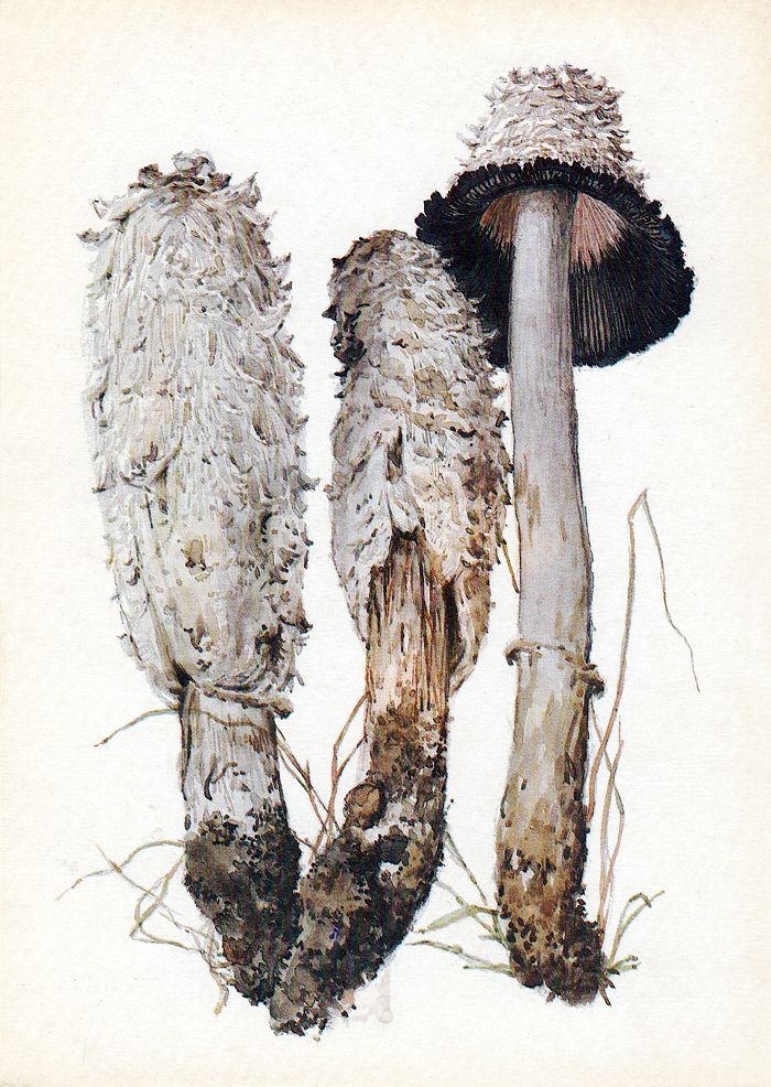 Шляпка удлиненно яйцевидная, позднее колокольчатая, волокнисто-чешуйчатая, диаметром до 10 см, белая, на верхушке охристая. Пластинки сначала белые, при созревании быстро темнеют до черноты и расплываются в черную жидкость. Мякоть нежная, белая, сока не выделяет. Ножка длинная, до 16 см, прямая, у основания утолщенная, белая, внутри полая, с пленчатым кольцом вверху. Встречается часто в сентябре-октябре, иногда попадается раньше. Растет на сильно унавоженной и богатой перегноем почве (отсюда и название — «навозник»), на мусорных участках вблизи домов, на огородах, на газонах и скверах, в парках. Гриб съедобный, 4-й категории. Используется свежим (вареным и жареным) только в очень молодом возрасте, пока пластинки еще белые. Хранение, даже непродолжительное, срезанные грибы навозника не выдерживают. В средней полосе встречается сходный с навозником белым навозник серый, который отличается от белого гладкой серой, на вершине мелкочешуйчатой, буроватой шляпкой. У серого навозника есть несколько интересных свойств. В пищу его можно употреблять только в течение 2–3 часов с момента его появления. Гриб не червивеет. Но самое интересное — жаркое из него могут есть только трезвые люди. В противном случае у человека начинается сердцебиение, тошнота и рвота. У нас этот съедобный гриб почти не собирают, а в Чехословакии это один из самых популярных грибов.