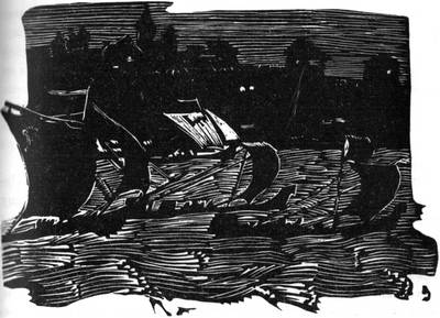 Мальчишки-рыбаки первыми разнесли по городу весть об удивительной лодье, показавшейся из-за острова впереди «Борисовых камней». Это был громадный парусник, по причине безветрия шедший на веслах. В два яруса они торчали из борта корабля, мелькали ритмично, черные и длинные, и казались издали ножками огромной жирной гусеницы, медленно ползущей против течения. Не успел корабль полностью выйти из-за острова, как показались мачты второго такого же, третьего, четвертого... На городском берегу — наверху, где ломаным рядом стояли дома, и у кромки воды, и на грядках и тропинках сбегавших к воде огородов — всюду собирались всполошившиеся жители. В одиночку и небольшими группами они с беспокойством следили за невиданными кораблями. Прикрыв ладонью глаза, Феодор тоже глядел на реку. Тщетно пытался разгадать назначение лодей — не рыбацкие и не торговые. Ни одного человека не видно на палубах. Гнетущей тайной веяло от кораблей. Передовой давно скрылся за далеким поворотом выше города, когда из-за острова выплыл последний корабль. — Двадцать три, — вполголоса сосчитал Феодор. — А куда идут? Разве такие громадины через волоки перетащишь? Но вот совсем недалеко как-то неожиданно снова показался головной корабль. Он шел теперь в обратном направлении. Его сто черных ножек все подняты — сто лап, занесенных для удара. А на верхней палубе теперь видно множество людей. Все в черных шлемах, в блестящих латах, с алебардами, пиками, мечами. И на каждом развевается широкий белый плащ с нарисованными на нем крестом и мечом. Потому ли, что солнце светило прямо в глаза, или на фоне плащей так лишь казалось, — и латы, и оружие, и каменные лица этих загадочных людей выглядели черными. — Теперь видишь, кого бог послал? — услышал Феодор чей-то голос. — Немецкое войско. С миром едут или как? Не один Феодор задает себе этот вопрос. Вдоль пристани, оттесняя праздных, выстраивается сотня княжеской дружины, сюда же спешит отряд ополчения. Но корабли, слава богу, проходили мимо, увлекаемые течением. Лишь одна небольшая лодчонка отделилась от головного, пристала к берегу. Из нее вышел человек в таком же, как у остальных, белом плаще, вооруженный коротким мечом в драгоценных ножнах, с большим серебряным крестом на груди. «Поп с мечом?!» — удивился Феодор, удивились все вокруг. Нигде не было слыхано, чтобы человек одновременно надевал оружие и крест священнослужителя. Из лодки выскочил второй человек, проще одетый, без оружия. Они поднялись по деревянным ступенькам. Передний отыскал глазами старшего над выстроившимся войском и, как требовал освященный временем обычай, подошел к нему с приветствием. Не по- здешнему поклонился, сложив руки на груди, не по-здешнему заговорил. Но все на берегу поняли его знаки уважения и облегченно вздохнули: гость, а не воин прибыл, гостям всегда рады. Его спутник был переводчиком. Иностранец осведомился о здоровье местного князя, выразил сожаление, что по недостатку времени лишен возможности лицезреть его, просил передать ему пожелание долгих лет жизни от епископа Альберта — начальника над всеми этими кораблями. Говоря, иностранец не переставал улыбаться. Но и улыбка его казалась черной Феодору, издали наблюдавшему церемонию. Затем иностранец сообщил, что с благословения его святейшества папы Римского он уполномочен пригласить всех желающих