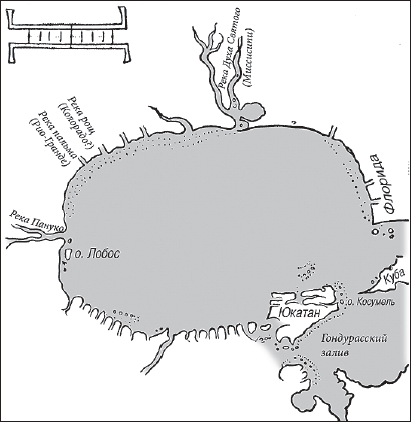 Вероятно, сразу же Ланда начал собирать материалы для книги, над которой работал более десяти лет, и завершённой в 1566 г. во время его пребывания в Испании. Подлинная рукопись её не разыскана; сокращённая копия, найденная в 1863 г., впервые издана в 1864 г. под названием «Сообщение о делах в Юкатане». Она стала основным источником по истории и этнографии народа майя времён Конкисты. Труд Ланды, прирождённого серьёзного исследователя, использовавшего сведения испанцев, а также майя, с которыми он говорил на их языке, представляет большой интерес не только в историческом и этнографическом планах: в нём дано первое физико-географическое описание полуострова Юкатан (около 180 тыс. кв. км): «Юкатан не остров… как полагали некоторые, а часть материка» [162] . Он объяснил это ошибочное мнение существованием двух акваторий у основания полуострова: на юго-востоке проточного озера Исабаль, имеющего на картах XX в. второе название, восходящее к XVI в., – Гольфо-Дульсе, т. е. «Пресноводный залив» на северо-западе лагуны Терминос, которая ввела в заблуждение даже такого выдающегося мореплавателя, как Аламинос. «Эта земля очень ровна и лишена гор, поэтому не видна с кораблей, пока [они не подойдут] очень близко, кроме [местности] между Кампече и Чампотоном, где показывается несколько холмиков… Берег её низкий, и… большие суда ходят, несколько удалившись от суши».