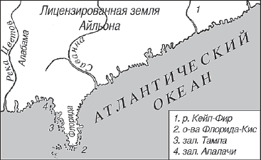 Одного из захваченных индейцев Айльон крестил и вместе с ним отплыл в Испанию. Рассказы «крестника» о его родине заинтриговали Айльона, и в июне 1523 г. он получил от короны патент на колонизацию и христианизацию части побережья; поиски пролива между Атлантическим и Тихим океанами составляли дополнительную задачу. По возвращении на Эспаньолу Айльон весной 1525 г. направил на рекогносцировку два судна под командой Педро Кексоса, участника плавания Гордильо. Испанцы прошли вдоль берега почти до мыса Фир (у 34° с. ш.) – общая длина открытой обеими экспедициями Айльона береговой линии составила более 700 км. Миролюбиво настроенные индейцы доставили морякам продукты, и те вернулись на Эспаньолу. Ободрённый полученными новостями, Айльон в июле 1526 г. отплыл от Эспаньолы во главе флотилии из шести судов с пятьюстами колонистами на борту. Нигде не высаживаясь, испанцы подошли к устью реки, вероятно у 33°40′ с. ш. Здесь флагман потерпел крушение, остальные суда поднялись по реке, но не нашли подходящего места для поселения и спустились южнее, видимо к устью реки Саванна [163] (у 32° с. ш.). В посёлке, основанном на берегу, жизнь как-то сразу не заладилась: дисциплина среди колонистов отсутствовала, хорошие взаимоотношения с индейцами вскоре испортились, несомненно по вине пришельцев, местность оказалась малярийной, и они начали болеть, неожиданно рано наступили холода. 18 октября 1526 г. умер Айльон, а весной следующего года первая испанская колония на Атлантическом побережье будущих Соединённых Штатов Америки прекратила существование. На Эспаньолу на четырёх судах вернулось лишь 150 уцелевших колонистов.