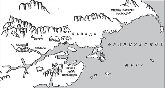20 апреля 1534 г. участник плаваний Верраццано «весёлый корсар» Жак Картье, до этого выделившийся своими каперскими операциями, по заданию адмирала Франции отправился из Сен-Мало на запад – на розыски северного морского пути в Китай – на двух 60-тонных кораблях с экипажем 61 человек. За 20 дней он пересёк океан и 10 мая подошёл к восточному берегу Ньюфаундленда у залива Бонависта. Льды помешали высадке, и, идя на северо-запад вдоль их кромки, 9 июня он достиг северной оконечности Ньюфаундленда, где его остановила та же преграда. После того как шторм разогнал льды, Картье начал медленно продвигаться на юго-запад, как оказалось, через пролив, получивший не совсем подходящее название Бель-Иль, в английском произношении Белл-Айл, т. е. «Прекрасный остров», по угрюмому необитаемому острову у его северного входа (у 52° с. ш.). Картье тщательно исследовал ньюфаундлендский и лабрадорский берега пролива, а затем проник в Великий залив – название это дано французскими рыбаками, уже посещавшими его. Картье присвоил ему имя Св. Лаврентия, так как 7 августа, в день этого святого, уже на обратном пути, закончил обход почти всей акватории. Берега Лабрадора он описал очень мрачными красками: «Вот если бы земля была здесь так хороша, как гавани… да её и землёй нельзя назвать, только голые камни и скалы. Я обошёл всё северное побережье залива и не мог бы собрать даже воза земли, а высаживался я… во многих местах». Картье пересёк затем залив в юго-западном направлении, открыл группу островов Мадлен и 1 июля увидел большую приветливую сушу, которую счёл за полуостров: он принял за бухту пролив Нортамберленд, отделяющий её от материка. А это был остров Принца Эдуарда (5600 кв. км) [173] . Картье не мог высадиться там, так как не нашёл сколько-нибудь удобной гавани. Зато дальше к западу он коснулся материка через два дня и у 48° с. ш. открыл глубокий, далеко вдающийся в сушу залив Шалёр («Жаркий»), сначала очень обрадовавший его: «…судя по глубине, ширине и по характеру берегов, он мог, как мы надеялись, оказаться проливом». В заливе Картье впервые встретил индейцев, которые подошли к кораблям на девяти челнах. На них была одежда, сшитая из шкурок каких-то животных, и они предлагали в обмен такие же шкурки, не представлявшие, по словам Картье, большой ценности. Начался немой торг, и индейцы вошли в такой азарт, что «променяли всю свою одежду и уехали совершенно голыми». Берега залива Шалёр были покрыты лесом, на открытых местах росли дикие злаки. После завершения его обследования 12 июля Картье повернул на север и открыл небольшой залив (Гаспе), на побережье которого поставил девятиметровый деревянный крест с надписью: «Многие лета королю Франции». Там он захватил двух индейцев «для языка». Затем Картье продвинулся к северу от этой земли (полуострова Гаспе), пересёк широкий пролив Гаспе (принятый им за залив) и увидел ещё одну большую землю, которую также счёл за полуостров, но ошибся: то был остров Антикости (8150 кв. км). Суда обогнули его с востока и прошли на запад вдоль его северного берега, 15 августа они достигли места, где широкий сначала пролив суживался и навстречу шло сильное течение. Здесь по настоянию команд обоих судов Картье прекратил поиски прохода в Восточный океан и 5 сентября 1534 г. вернулся во Францию. На родине он объявил, что обнаружил ведущий к Китаю пролив, и даже дал 