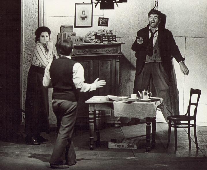 Декорации к спектаклю представляют собой несколько помостов и ступеней, приподнятых над плоскостью сцены. В одной картине помост используется как мастерская, в другой — как возвышение для папского трона. Ступени в одном случае ведут на террасу, в другом — это скамьи для молящихся в церкви. Иногда два эпизода разыгрываются одновременно, контрапунктом на противоположных сторонах сцены, и они совмещаются, когда действующее лицо идет через сцену из одной картины в другую. Простота декорации должна обеспечить непрерывность действия и придать ему пластичность.Посвящается Бернис