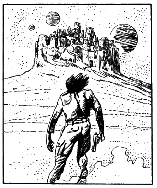 Уэбб доел остатки своих припасов, и тогда семеро «древних» вновь сказали ему: — Мы позаботимся… — Человек умрет, — настойчиво повторял Уэбб. — Нет еды. Человеку смерть. — Мы позаботимся, — твердили семь маленьких существ, выстроившись полукругом. — Позаботимся позже… Он понял их так, что сейчас еды для него нет, но позже она должна появиться. Они снова двинулись в путь. Пути, казалось, не будет конца. Уэбб падал с ног и кричал во сне. Он дрожал мелкой дрожью даже тогда, когда удавалось отыскать древесину и они сидели, скорчившись у костра. День за днем только песок да скалы — ползком вверх на крутой гребень, кубарем вниз с другой стороны или шаг за шагом по жаркой равнине, по морскому дну давно минувших эпох. Путь превратился в монотонную мелодию, в примитивный ритм, в попевку из трех звенящих нот, заунывную, нескончаемую, которая бьется в висках весь день и еще многие часы после того, как настала ночь и путники остановились на отдых. Стучит до головокружения, пока мозг не отупеет от стука, пока глаза не откажутся четко видеть мир и мушку пистолета — надо встретить огнем нападающего, подползающего или пикирующего врага, вдруг возникающего ниоткуда, а она превращается в расплывчатый шарик. И повсюду их подстерегали миражи, вечные марсианские миражи, которые, казалось, вплотную граничат с реальностью. В небе вспыхивали мерцающие картины: вода и деревья, и неоглядные зеленые степные дали, каких Марс не видел на протяжении бессчетных столетий. Словно, как говорил себе Уэбб, минувшее крадется за ними по пятам, словно оно по-прежнему существует и пытается нагнать тех, кто ушел вперед, оставив былое позади против его воли. Он потерял счет дням, заставляя-себя не думать о том, сколько еще таких дней до цели; в конце концов ему стало мерещиться, что так будет продолжаться вовеки, что они не остановятся никогда и это их пожизненный удел — встречать утро в голой пустыне и брести по пескам вплоть до прихода ночи. Он допил остатки воды и напомнил семерым, что не сможет жить без нее. — Позже, — ответили они. — Вода позже. И действительно, в тот же день они вышли к городу, и там в туннеле, глубоко под лежащими на поверхности руинами, была вода — капля за каплей, мучительно медленно, она сочилась из разбитой трубы. Но все равно — вода, даже еле капающая, на Марсе была чудом из чудес. Семеро пили сдержанно: они столетиями приучали себя обходиться почти совсем без питья, приспособились к безводью и не страдали от жажды. А Уэбб лежал у разбитой трубы часами, подставляя под капли ладони, стараясь накопить хоть немного воды, прежде чем выпить ее одним глотком, а то и просто отдыхая в прохладе, что было само по себе блаженством. Потом он заснул, проснулся и выпил еще немного. Теперь он отдохнул и жажды больше не чувствовал, но тело кричало криком, требуя еды. А еды не было, и не было никого, кто мог бы ее принести. Маленькие существа куда-то скрылись. «Они вернутся, — успокаивал он себя. — Они ушли ненадолго и скоро вернутся. Они ушли, чтобы достать мне еды, и вернутся, как только достанут…» Все его мысли о семерых были именно такими, добрыми мыслями. Не без труда Уэбб выбрался наверх тем же туннелем, который привел его к воде, и наконец очутился подле развалин. Развалины лежали на холме, господствующем над окружающей пустыней; с вершины холма открывался вид на многие мили