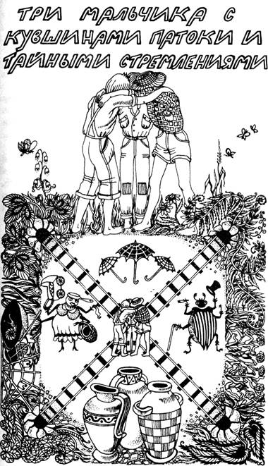 У Тряпичной Куклы было множество друзей. И Веник, и Совок для Угля, и Кофейник очень любили Тряпичную Куклу. Но решив выйти замуж, она выбрала того, кто нашел ей глаза. Один милый, но очень невнимательный ребенок стукнул куклу головой о дверь и разбил оба пришитых в незапамятные времена стеклянных глаза. Тогда-то Веник и нашел две калифорнийские черносливины и прикрепил их как раз туда, где должны быть глаза. Теперь у Тряпичной Куклы было два новехоньких черных глаза, и некоторые даже прозвали ее за это Черноглазкой. Что за свадьба была у Тряпичной Куклы с Веником! Роскошная свадьба с роскошной свадебной процессией, ни у одной тряпичной куклы такой не было. Не говоря уже ни об одном венике. Кто же вышагивал в этой процессии? Самыми первыми шли Облизыватели тарелок. Что они несли с собой? Кто блюдце, кто мелкую тарелку, а кто и глубокую. А что было в тарелках? У кого пенки от варенья, у кого подливка, у кого ванильная помадка. У одних сладкие лакомства, у других – кое-что посущественней. Вышагивая в свадебной процессии Тряпичной Куклы и Веника, они вылизывали тарелки, гордо оглядывались по сторонам и снова вылизывали. За ними выступали Стучальщики по жестянкам. У них в руках были сковородки и кастрюльки, а у некоторых – целые противни. Кастрюльки были жестяные с жестяными донышками, и они стучали по донышкам, кто ножом, кто вилкой, кто утюгом, а кто и деревянной толкушкой. Так они вышагивали в свадебной процессии Тряпичной Куклы и Веника, стуча по жестянкам, гордо оглядываясь вокруг и снова стуча по жестянкам. За ними шли Шоколадные Подбородки. Они ели шоколад, и у них все подбородки были в шоколаде. У одних в горьком шоколаде были измазаны даже носы, у других потеки молочного шоколада доходили до ушей. Так они вышагивали в свадебной процессии Тряпичной Куклы и Веника, задрав подбородки и гордо оглядываясь вокруг. За ними двигались Грязные Фартучки. Фартучки были простые белые, в горошек и в полоску, голубые и с бабочками. Но все они были грязные. И простые белые, и в горошек, и в полоску, и голубые, и с бабочками – все они были грязные. Так вышагивали в свадебной процессии Тряпичной Куклы и Веника Грязные Фартучки, захватанные грязными пальчиками, гордо оглядывались вокруг и смеялись, и снова гордо оглядывались вокруг и смеялись. За ними выступали Чистые Уши. Они ужасно гордились своей чистотой. Никто не знал, как они попали в процессию. Они были вымыты не только снаружи, но и внутри. Ни снаружи, ни внутри на них не было ни следа ни грязи, ни пыли, ни какого-либо иного беспорядка. Они шли в процессии Тряпичной Куклы и Веника, шевеля ушами, гордо оглядываясь вокруг и снова шевеля ушами. Следующими в процессии были Боящиеся Щекотки. Лица их сияли, щеки лоснились, гладкие, как куски мыла. У них были крепкие кости, а на костях вдоволь мяса и жира. Казалось, они говорили: «Не щекочи меня, я так боюсь щекотки». Шагая в свадебной процессии Тряпичной Куклы и Веника, они щекотали друг друга и смеялись, гордо оглядывались вокруг и снова щекотали друг друга. Музыкой заведовали Певцы с кашей во рту. Они шли с котелками каши и большими ложками. Они причмокивали, чавкали и сопели, и шум, который они издавали, был слышен даже в голове процессии, где шагали Вылизыватели тарелок. Они зачерпывали ложками кашу, гордо оглядывались вокруг и снова зачерпывали кашу. За ними шли У