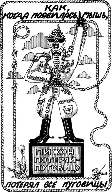«Пижон был весь в пуговицах, – начал старик, – пуговиц было столько, и они были так туго застегнуты, что когда Пижон набирал в легкие побольше воздуха, чтобы заговорить, пуговица отрывалась и летела прямо в лицо собеседнику. Иногда, когда он набирал побольше воздуха в легкие, две пуговицы отрывались и летели сразу в двух собеседников. Люди говорили: „Не странно ли, что пуговицы отрываются и улетают, когда Пижон набирает полные легкие воздуха, чтобы заговорить?“ Постепенно все стали звать его Пижон Потеряй-Пуговицу. Поймите, что Пижон сильно отличался от других людей. Он обвязался веревкой, длинной свисающей вниз веревкой с узелком на конце. Объяснял он это так: «Я иногда теряю сам себя, тогда я ощупываю веревку и постепенно себя нахожу». Бывало, что у Пижона в разговоре отрывалась пуговица, и он спрашивал: «Это мышь? Это мышь?» Иногда он обращался к людям: «Я поговорю с тобой – если у тебя нет мышки в кармане». Когда Пижон последний раз пришел в Крем-Торт-таун, он встал на главной площади, застегнутый на все пуговицы, а пуговиц было еще больше, чем раньше. Как только он набрал воздух в легкие, чтобы заговорить, пять или шесть пуговиц сразу оторвались и разлетелись по площади. «Когда небо валилось на землю, кто выбежал и поддержал его? – закричал он. – Это я, это я выбежал и поддержал небо, когда оно валилось на землю». «Когда небо полиняло, откуда взяли синьку, чтобы снова подсинить небо? Это я, это я собрал синичек и голубей, чтобы вернуть небу синеву». «Теперь, когда идет дождь, он льется на зонтики, потому что зонтики для дождя есть у всех. Благодаря кому? Благодаря мне – Пижону Потеряй-Пуговицу». «Кто с легкостью снял радугу с неба, а потом закинул ее обратно? Это был я». «Кто перевернул все амбары, а потом снова поставил их как надо? Это я сделал». «Кто опреснил море, а потом снова его посолил? Кто выловил из моря всю рыбу, а потом снова ее туда запустил? Это был я». «Кто научил заячью капусту сражаться с зайцами? Кто посеребрил серебристый тополь? Кто сделал Короля Битых Бутылок бродягой, что скитается по миру и бормочет: „Пади, пади?“ Кто открыл окна звезд и забросал небесную твердь рыбками, кошками и кроликами? Это я, я, я». Пуговицы так и отскакивали, пока Пижон произносил свою речь, потому, что ему приходилось все время набирать побольше воздуха в легкие, чтобы продолжать. Вся главная площадь была покрыта грудами оторвавшихся в тот день пуговиц. Наконец появился мышонок, трусливый, юркий, быстрый мышонок. В мгновение ока он забрался на веревку, обвязанную вокруг Пижона, длинную свисающую вниз веревку с узлом на конце. Он схватил узелок и разгрыз его. Он стал грызть веревку, а Пижон закричал: «Ай, ай, ай». Тут у Пижона оторвались остальные пуговицы и с него свалилась вся одежда. Люди подошли посмотреть, что случилось. Среди вороха одежды никого не было. Одетый в нее человек исчез. Все что осталось, это пуговицы и немного одежки. С тех пор, когда дождь сначала падает на зонтик, а потом на тех, кто его держит, или кажется, что небо валится, или если амбары переворачиваются, или если Король Битых Бутылок идет, бормоча: «Пади, пади», или в ночном небе появляются огненные хвосты, рыбки, кошки и кролики, или когда пуговицы отрываются и летят кому-нибудь в лицо, люди вспоминают Пижона Потеряй-Пуговицу.