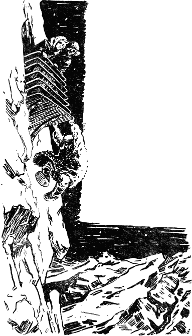 Зурита приводил в исполнение свою угрозу. Он возвел на дне залива много проволочных заграждений, протянул во всех направлениях сети, наставил капканы. Но его жертвами пока были только рыбы, «морской дьявол» как будто провалился сквозь землю. Он больше не показывался и ничем не напоминал о себе. Напрасно прирученный дельфин каждый день появлялся в заливе, нырял и фыркал, как бы приглашая своего необычайного друга совершить прогулку. Его друг не показывался, и дельфин, сердито фыркнув в последний раз, уплыл в открытое море. Погода испортилась. Восточный ветер раскачал гладь океана; воды залива стали мутными от песка, поднявшегося со дна. Пенистые гребни волн скрывали дно. Никто не мог разглядеть, что происходит под водой. Зурита часами мог стоять на берегу, глядя на гряды волн. Огромные, они шли одна за другой, обрушивались шумными водопадами, а нижние слои воды с шипением катились дальше по сырому песку, ворочая гальку и раковины, подкатываясь к ногам Зуриты. — Нет, это никуда не годится, — говорил Зурита. — Надо придумать что-нибудь иное. Дьявол живет на дне моря и не желает выходить из своего убежища. Значит, чтобы поймать его, нужно пойти к нему — опуститься на дно. Это ясно! И, обратившись к Бальтазару, мастерившему новый сложный капкан, Зурита сказал: — Отправляйся немедленно в Буэнос-Айрес и привези оттуда два водолазных костюма с кислородными резервуарами. Обычный водолазный костюм со шлангом для нагнетания воздуха не годится. Дьявол может перерезать шланг. Притом, быть может, нам придется совершить небольшое подводное путешествие. Да не забудь захватить с собой электрические фонари. — Вы желаете в гости к дьяволу? — спросил Бальтазар. — С тобой, конечно, старина. Бальтазар кивнул головой и отправился в путь. Он привез не только водолазные костюмы и фонари, но и пару длинных, замысловато искривленных бронзовых ножей. — Теперь уже не умеют делать таких, — сказал он. — Это древние ножи арауканцев, которыми мои прадедушки вспарывали когда-то животы белым — вашим прадедушкам, не в обиду вам будь сказано. Зурите не понравилась эта историческая справка, но ножи он одобрил. — Ты очень предусмотрителен, Бальтазар. На другой день, на заре, несмотря на сильную волну, Зурита и Бальтазар надели водолазные костюмы и опустились на дно моря. Не без труда распутали они стоявшие у входа в подводную пещеру сети и влезли в узкий проход. Их окружала полная темнота. Став на ноги и вынув ножи, водолазы засветили фонари. Испуганные светом мелкие рыбы метнулись в сторону, а потом приплыли к фонарю, суетясь в его голубоватом луче, как рой насекомых. Зурита отогнал их рукой: блеском чешуи они ослепляли его. Это была довольно большая пещера, не менее четырех метров высоты и пяти-шести метров ширины Водолазы осмотрели углы. Пещера была пуста и необитаема. Только стаи мелкой рыбы, очевидно, укрывались здесь от морского волнения и хищников. Осторожно ступая, Зурита и Бальтазар продвинулись вперед. Пещера постепенно суживалась. Вдруг Зурита в изумлении остановился. Свет фонаря осветил толстую железную решетку, преграждавшую путь. Зурита не поверил своим глазам. Он схватился рукой за железные прутья и начал дергать их, пытаясь открыть железную преграду. Но решетка не поддавалась. Осветив ее фонарем, Зурита убедился, что решетка эта прочно вделана в обтесанны