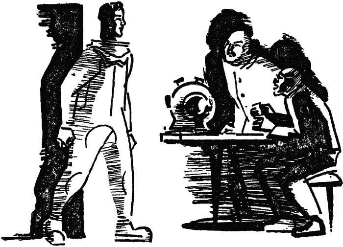 На длинном столе — чёрный шар диаметром в полтора метра. Один бок его срезан. Широкое окно выходит на Кольский залив. Там виднеются мачты и трубы траулеров рыбного треста. Однако в окно никто не смотрит. Взоры всех устремлены на чёрный шар. Двенадцать комсомольцев, членов кружка по изучению радиотехники, тесным кольцом обступили стол. Большинство — студенты морского техникума, часть — радисты с траулеров. Мотя Гинзбург, конструктор, изобретатель и руководитель кружка, радист траулера «Серго Орджоникидзе», похлопывая ладонью по чёрной металлической поверхности шара, спросил с усмешкой на умном худощавом лице: — Вы видите глазное яблоко… Кружковцы засмеялись: — Хорошенькое яблоко! — Какой же должна быть орбита, чтобы вместить такое яблоко! — Орбитой будет море. Довольно? — спросил Мотя. — Это радиоглаз, с помощью которого мы увидим, что творится в глубинах моря. — Телевизор! — вскричал один из стоявших возле стола. В сущности говоря, Мотя не изобрёл ничего или почти ничего. Ему случалось видеть фотографии американских и немецких телевизоров, приспособленных для наблюдений на морской глубине. Правда, это были фотографии. Но принцип работы телевизора известен. Оставалось самостоятельно продумать кое-какие конструктивные особенности подводного телевизора. И Мотя как будто бы удачно справился с этим: маленький опытный телевизор работал исправно. Почему бы не работать и этому, большому? Он почти готов. Вставить в круглое отверстие объектив, возле него — лампы прожекторов, и всё. Одним словом, часа два монтажных работ, и телевизор можно опускать в воду. — Чтобы взглянуть, что делается на дне моря? — спросил первокурсник морского техникума. — Именно. Взглянуть, как поживают морские крабы, — подхватил, снисходительно улыбаясь, его сосед, который считал себя человеком бывалым. — Что ж, и это интересно, — серьёзно ответил Гинзбург. — Будем ловить морских окуней? — Да, да. Сегодня — первая проба. Траулер уходит в час ноль-ноль. К этому времени мы успеем закончить, — ответил Гинзбург и приказал: — А ну, хлопцы, за работу! Слушатели ушли, а пять человек, во главе с Гинзбургом, остались и приступили к делу. — А знаете, кто будет с нами на пробном лове? — спросил Мотя своих товарищей. — Бласко Азорес, испанский коммунист, корреспондент. Он недавно приехал к нам, чтобы осмотреть новый Мурманск.Азорес вышел из гостиницы треста в полночь и направился по спуску к траловой базе. Испанец поёживался в своём осеннем пальто. Льдистый полуденный ветер бил в лицо. Падал мокрый снег. «Удивительный край! — размышлял Азорес. — Здесь всё наоборот: „солнечные ночи“, „ночные дни“. В этих краях люди выбирают квартиры окнами не на юг, а на север, потому что северный ветер, пролетая над тёплым течением Гольфстрима, нагревается, а южный — охлаждается над ледяным горным плато тундры. Суровый край, тяжёлый климат. Но всего этого не ощущаешь, даже не замечаешь — так интересен здесь человек и его дело». Внизу горели огни траловой базы. Высоко вздымались корпуса рыбообрабатывающих цехов. Гремели лебёдочные цепи. У пристани стояли траулеры. Одни разгружались, другие готовились к отплытию. Сновали транспортёры: к складам — с рыбой, от складов — с солью. Азорес быстро прошёл в конец пристани к большому траулеру. Был отлив, и борт траулера покачивался почти вровень с при